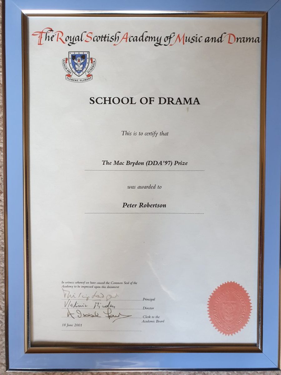 Peter also took courses on Filmmaking as well as Theatre Directing at the Strathclyde University.